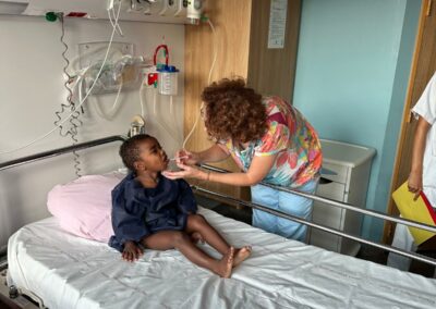 Nous avions depuis l’arrivée d’Arinel un lien téléphonique avec sa famille. Nous pensons que celle-ci a largement contribué au très bon séjour d’Arinel, elle a su poser des mots positifs, rassurants de confiance reflets de son bien-être. Les larmes de joie de la maman face au succès de l’opération ainsi que les remerciements et la reconnaissance familiales envers l’ensemble des personnes ayant eu un lien avec Arinel a été un moment de partage émouvant.