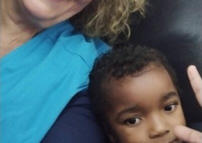 Au cours des examens préopératoires Arinel a très bien collaboré avec les multiples professionnels de santé, il était rassuré de notre présence et par la bienveillance des personnes rencontrées. A la maison comme à l’extérieur il était enjoué et très curieux. Jouer à taper avec le marteau, visser, scier, arroser le jardin lui ont permis de passer de très bons moments. Il a aussi passé du bon temps devant la tablette ! De nature sociable, il a fait la joie de notre cercle familial et amical et a été au centre de toutes les attentions et cajoleries. De plus, très charmeur, il allait à la rencontre des autres usant de sourires et attitudes.